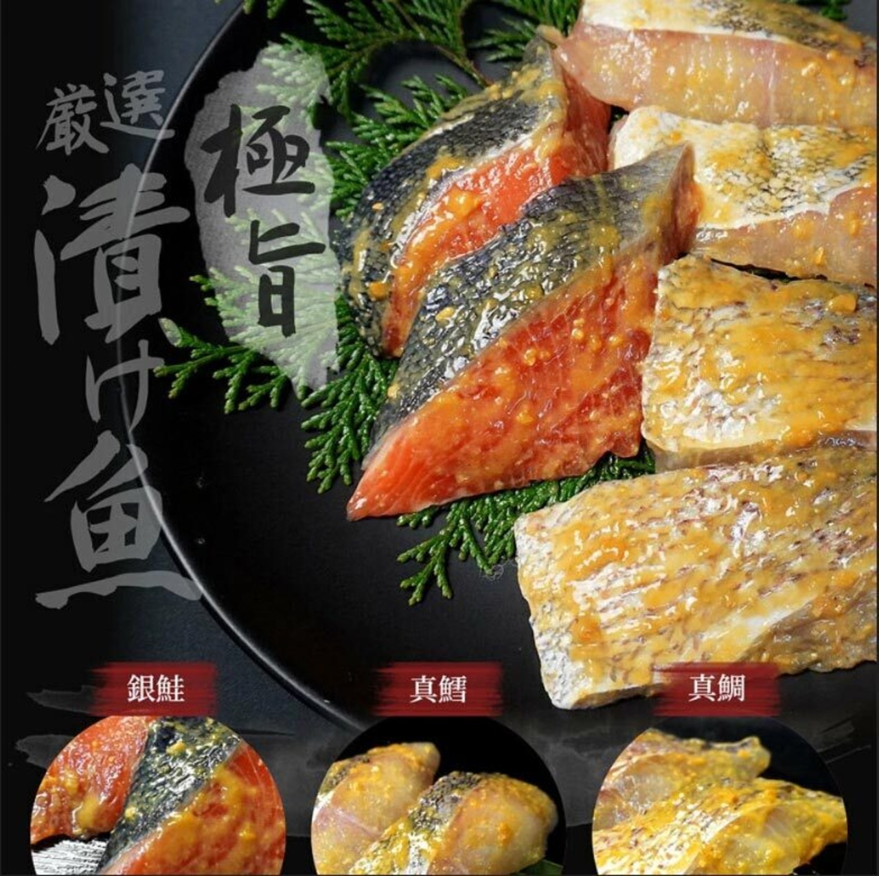 宮城産銀鮭、真鯛、真鱈の西京漬けをセットにしました。