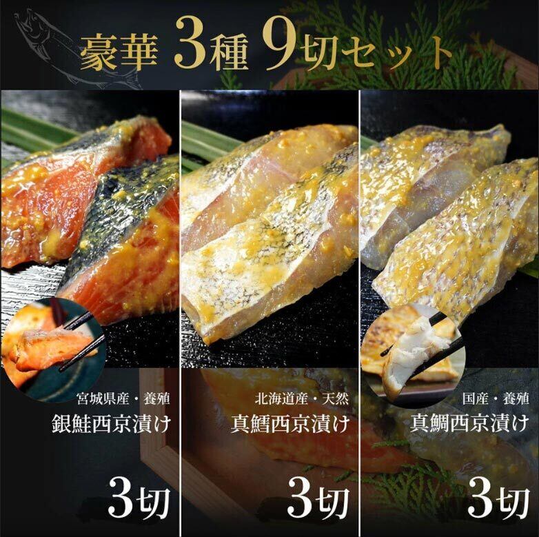 西京漬け セット(雪)【3種9切れ】 西京漬けセット 魚 西京焼き 送料無料 漬魚セット 漬け魚 焼き魚セット 焼魚セット 詰め合わせ 切り身 ギフト 国産 売れ筋 贈答 食品 お取り寄せ グルメ 御中元 おつまみ 酒 つまみ ランキング ギフトセット おかず 真鯛 銀鮭 真鱈 タイ タラ サケ