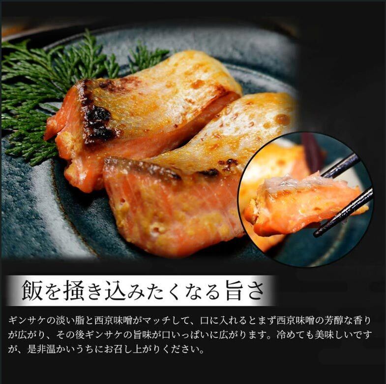 ギンサケの淡い脂と西京味噌がマッチして、口に入れるとまず西京味噌の芳醇な香りが広がり、その後ギンサケの旨味が口いっぱいに広がります。